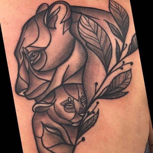 Lion mum with baby