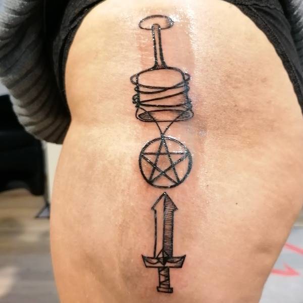 kelch, drudenfuss, schwert
